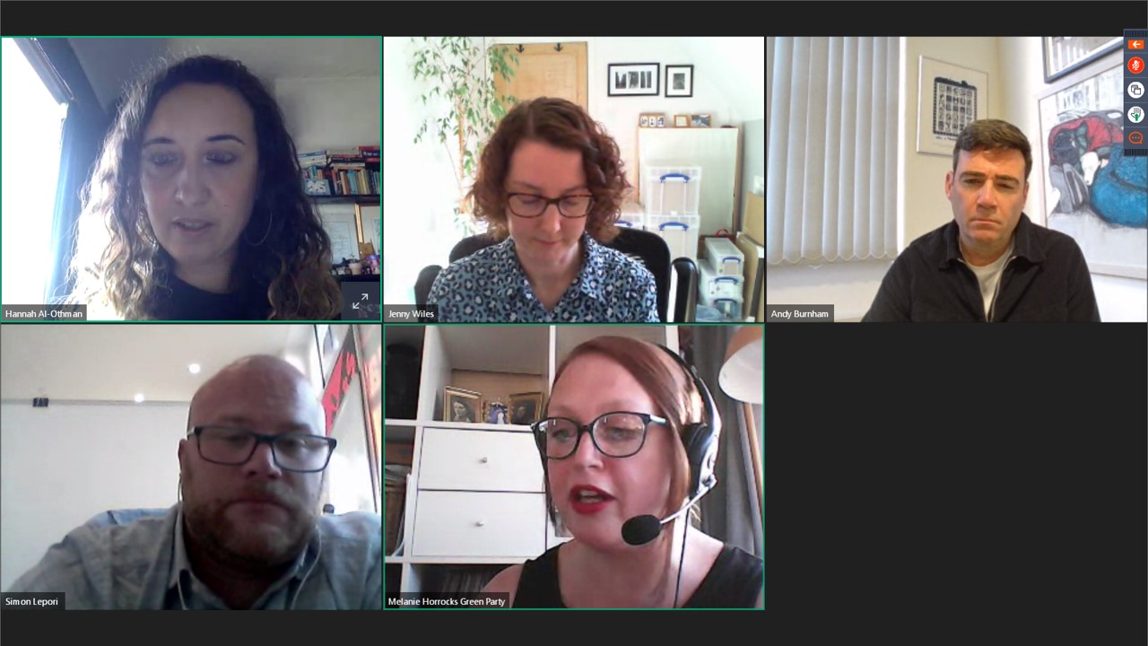 We were delighted to be part of the Sustainable Transport hustings which were held on Thursday 22nd April as part of the coalition that has come together around the Greater Manchester Mayoral elections 2021. It was an excellent event hosted by Claire Stocks from WalkRideGM and chaired by Hannah Al-Othman from the Sunday Times. There was a huge amount of common ground amongst the three mayoral candidates who appeared at the event, Andy Burnham from Labour, Simon Lepori from the Liberal Democrats and Mel Horrocks from the Green Party. VZYC Manchester and AVZ were especially pleased to see all three candidates agree that it was time to set a date for an end to death and serious injuries on the roads in Great Manchester and that a road danger reduction plan was needed to bring this about.