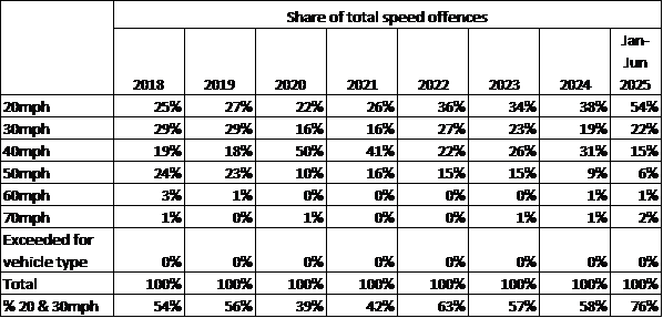 - 20 mph speed limit offences rose to 204,000 for the first half of 2025.