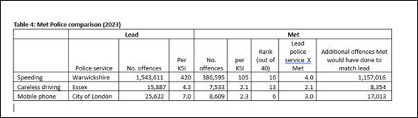 If the Met had enforced careless driving as Essex did (on a per KSI basis), another 8,354 careless driving offences would have been sanctioned, for a total of 15,887.