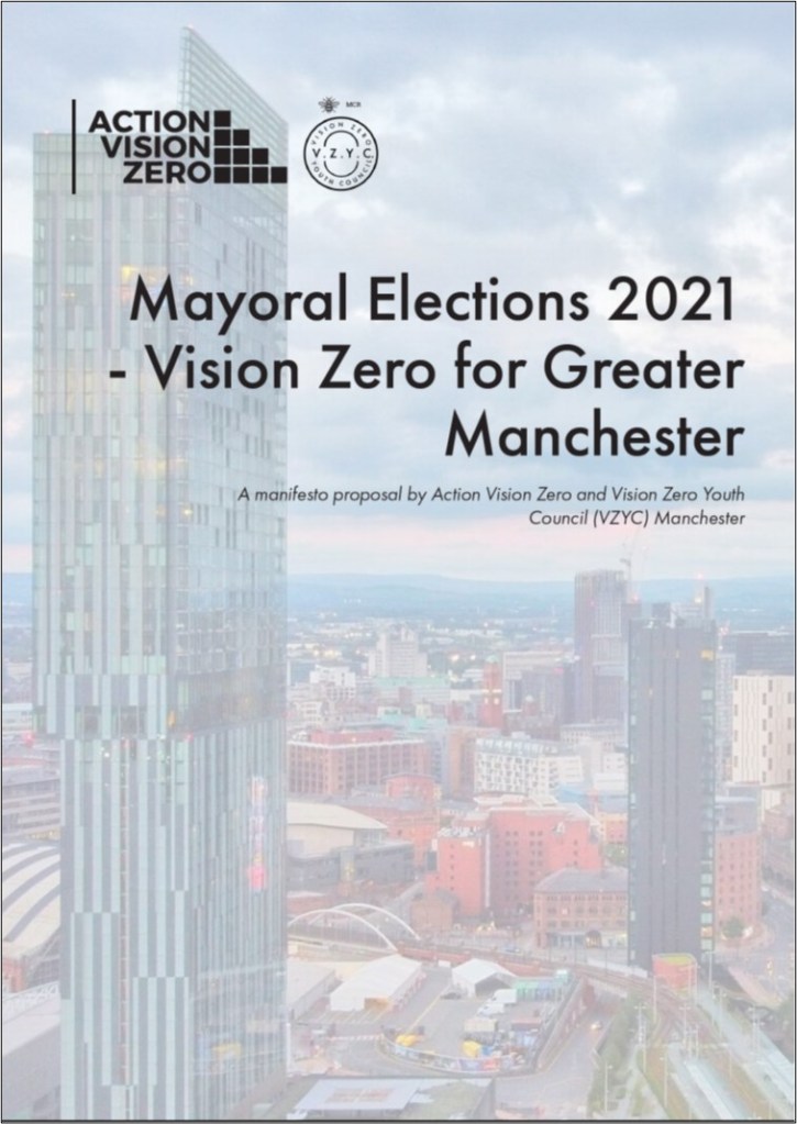 There are elections for the Mayor of Greater Manchester who serves as the directly elected leader of the Greater Manchester Combined Authority (City of Manchester, Stockport, Tameside, Oldham, Rochdale, Bury, Bolton, Wigan, City of Salford and Trafford). Action Vision Zero and the Vision Zero Youth Council Manchester have produced a joint manifesto with seeks to tackle the serious issues that Greater Manchester faces with road danger and the lack of progress that has been made to reduce fatalities and serious casualties in recent years. At the heart of our manifesto is the call for all Mayoral candidates to “confirm their support for Vision Zero, their commitment to set a target for ending fatal and serious road casualties (along with interim targets)” and to pledge to adopt a series of policies that can begin to deliver this aim.